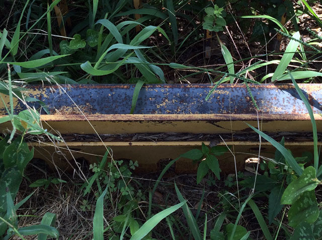 So, while picking up a chicken coop for my wife (that's a whole 'nother story.) I spied with my little eyes an orphan 105 gal. fuel tank, complete with pump. I've been rolling with a 35 gal. tank for quite a few years now, and it's never enough. I made a deal on the tank / pump, and decided to get off my lazy duff and git 'r done this weekend. I switched over my hose / nozzle and filter from the old setup since the new tank's hose was shot. The (new to me) tank had some surface rust, and since I'll be repainting the entire bed once I get things fixed up, I shot some rust converter in all of the places I'll (hopefully) never see again.
