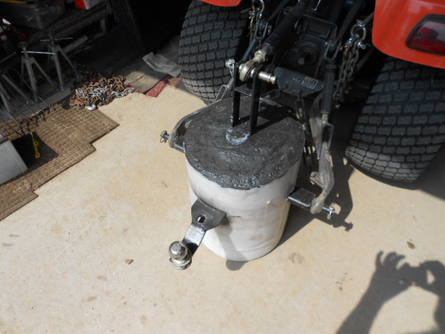I figure I can weld up a frame that can be attached to the 3pt with some scrap and then embed this in the concrete. I did something similar for a JD 212 I have that just bolts onto the rear and it worked out great, but what it would weigh when finished was a WAG at best. Frankly, I still don't know what it weighs, but I know it is heavy enough that I ended up laying on the garage floor for a couple hours waiting for someone to come home after I felt something in my lower back pop loud enough to be heard when I was just trying to roll the thing. Heck, I even thought of just making some kind of bracket to hang the weight I have off the back of the SCUT, but it's not an easy on/off the Deere and the Deere gets used quite a bit in situations where the weight comes in handy.