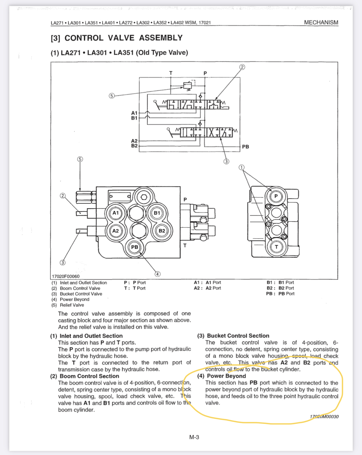 As soon as I let go of the button, the 3 point continued to raise. This proved that the PB is what powers the 3 point. The tank port on the grapple valve(3rd function valve) is connected to the power beyond port on the hydraulic block, which then feeds the line going back to the 3 point.View attachment 684577View attachment 684578