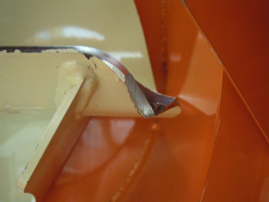 The back of the fan blades are quite well braced. The bottom of the plate that restricts the opening is bent on mine too. I need to straighten it. It has happened before but it does not bend the blower blades.