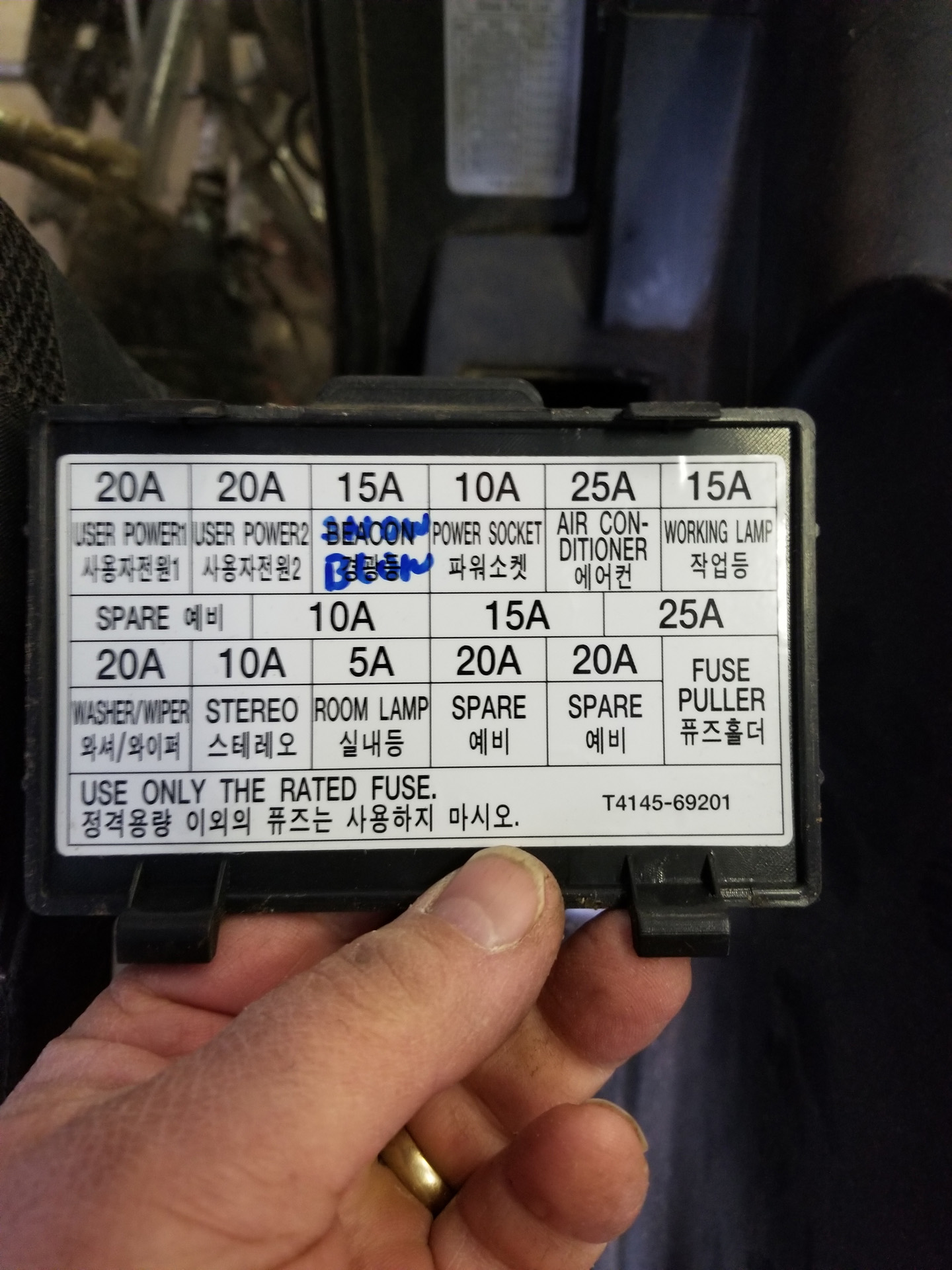 I tried to check fuses (before the fronts were changed), and according to the shop manual, fuse 7 should be the work lights. But when I look at the fuse box, that one doesn't exist (all the others do). Have they included the work lamps with the headlamps fuse?