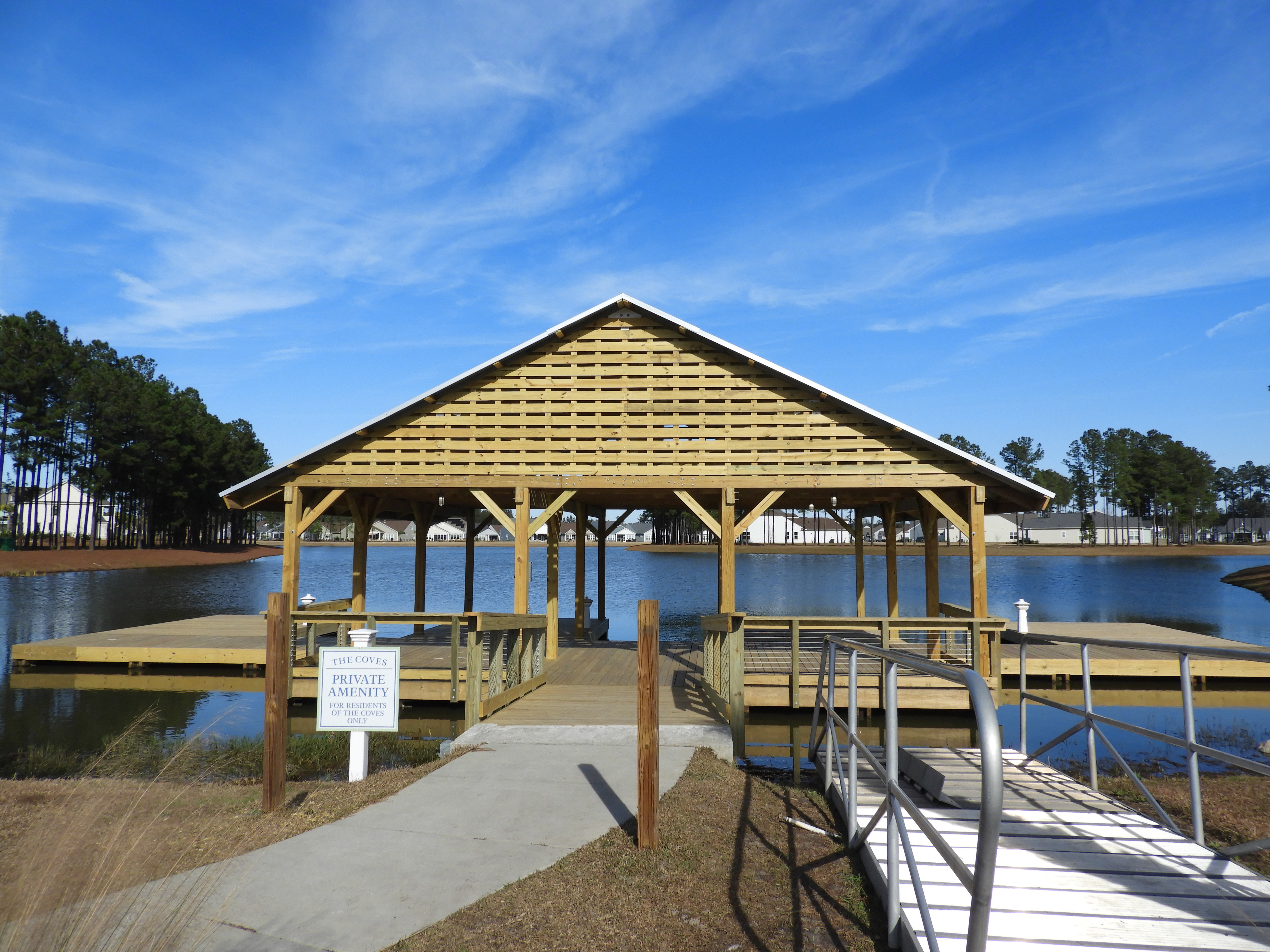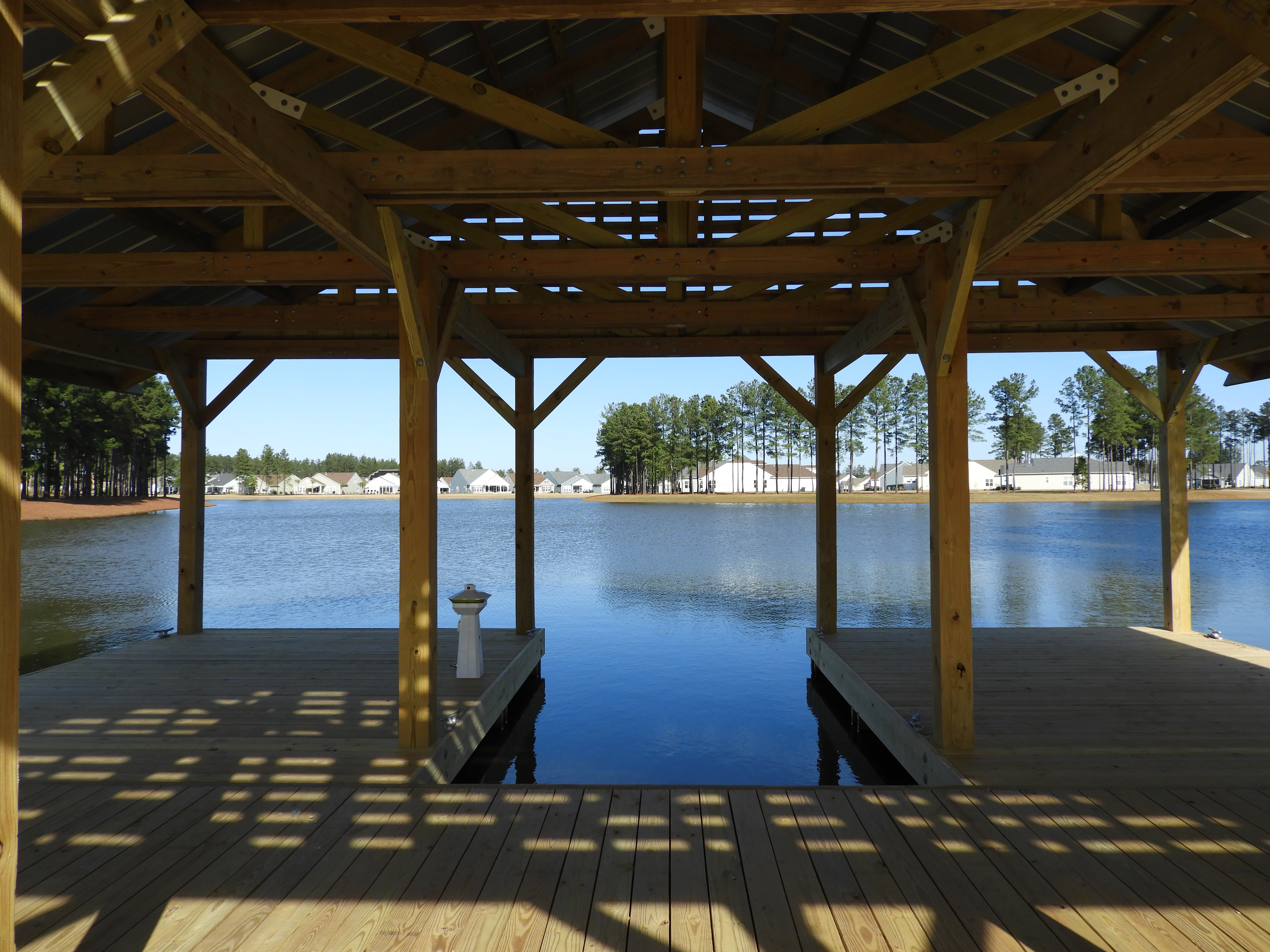 We drove 73 pilings into the lake bed, built the dock and then the roof.