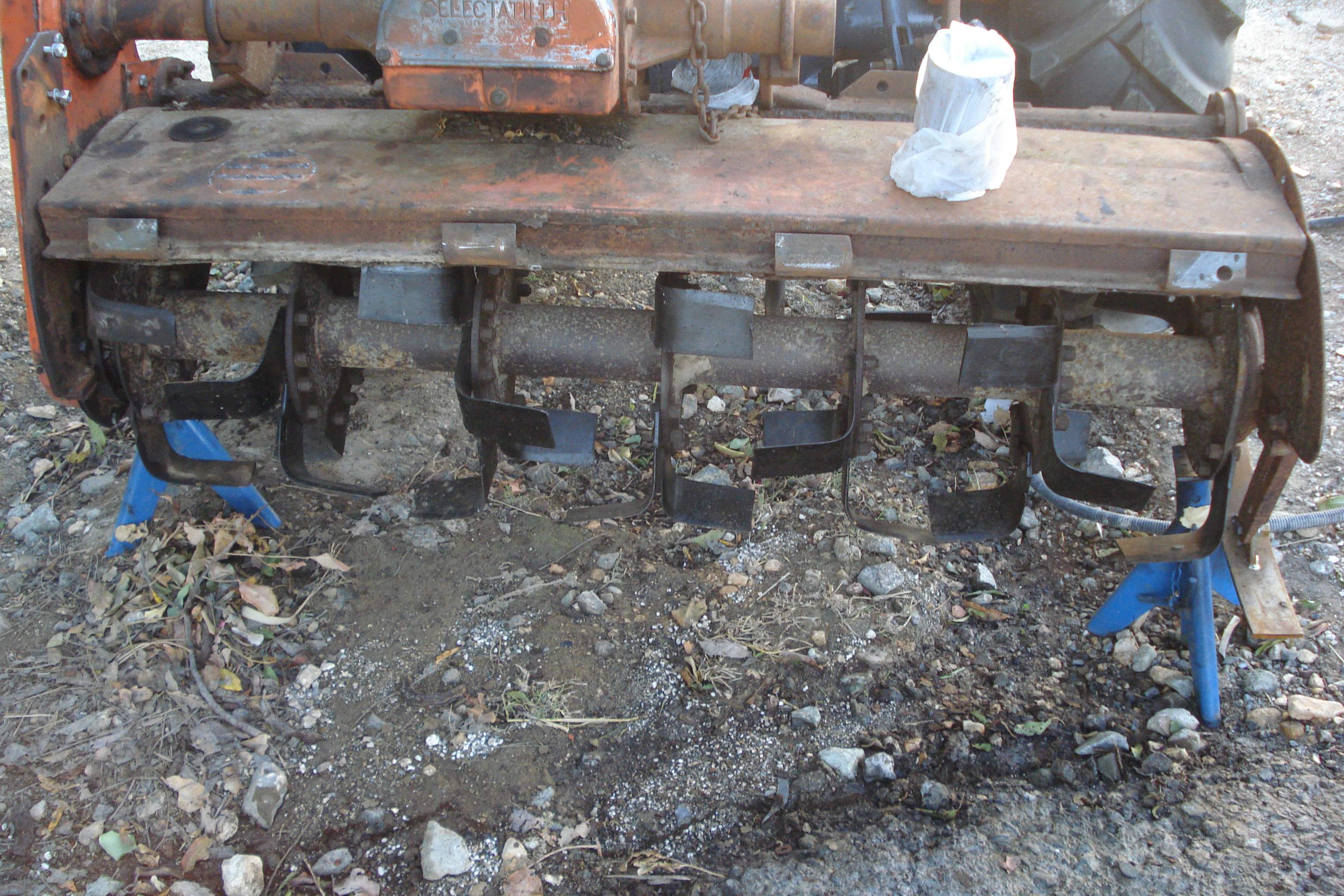 Tiller had part rusted cover which had to be replaced, also the flap door. chain side protector was reconstructed also the opposite side height adjuster. Chain was loose and caused some damage on the chain cover, gearbox bearings and gears fine without noise, chain side bearing was broken, so it was replaced (RMS18 code), other side bearing ok. Blades replaced, and after all this work done tiller was resprayed and looked like new.