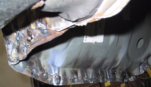 Old left fender cut off and new one put on and tack welded