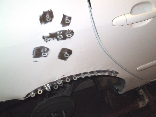 Great stuff RCH, takes me back to my high school and college days where I worked in a body shop. Everything looks the same except that washer weld trick. We drilled holes and used a slide hammer or dent pullers. Never seen the washer thing, that's cool. We also did what we called "clips". Take a good front and mate it to a good back. Basically cut the two cars right across the floor and the windshield posts. Did some Corvettes too, but that's a whole different story.