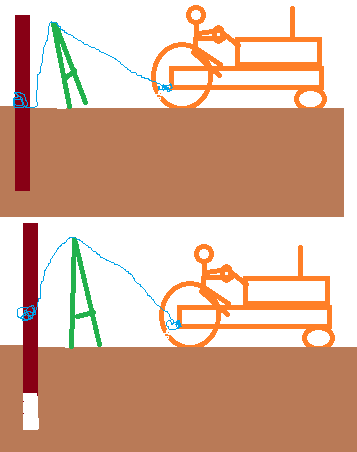 Ya also don't break the post using this manner as the force is in lifting or verticle with no side loading.