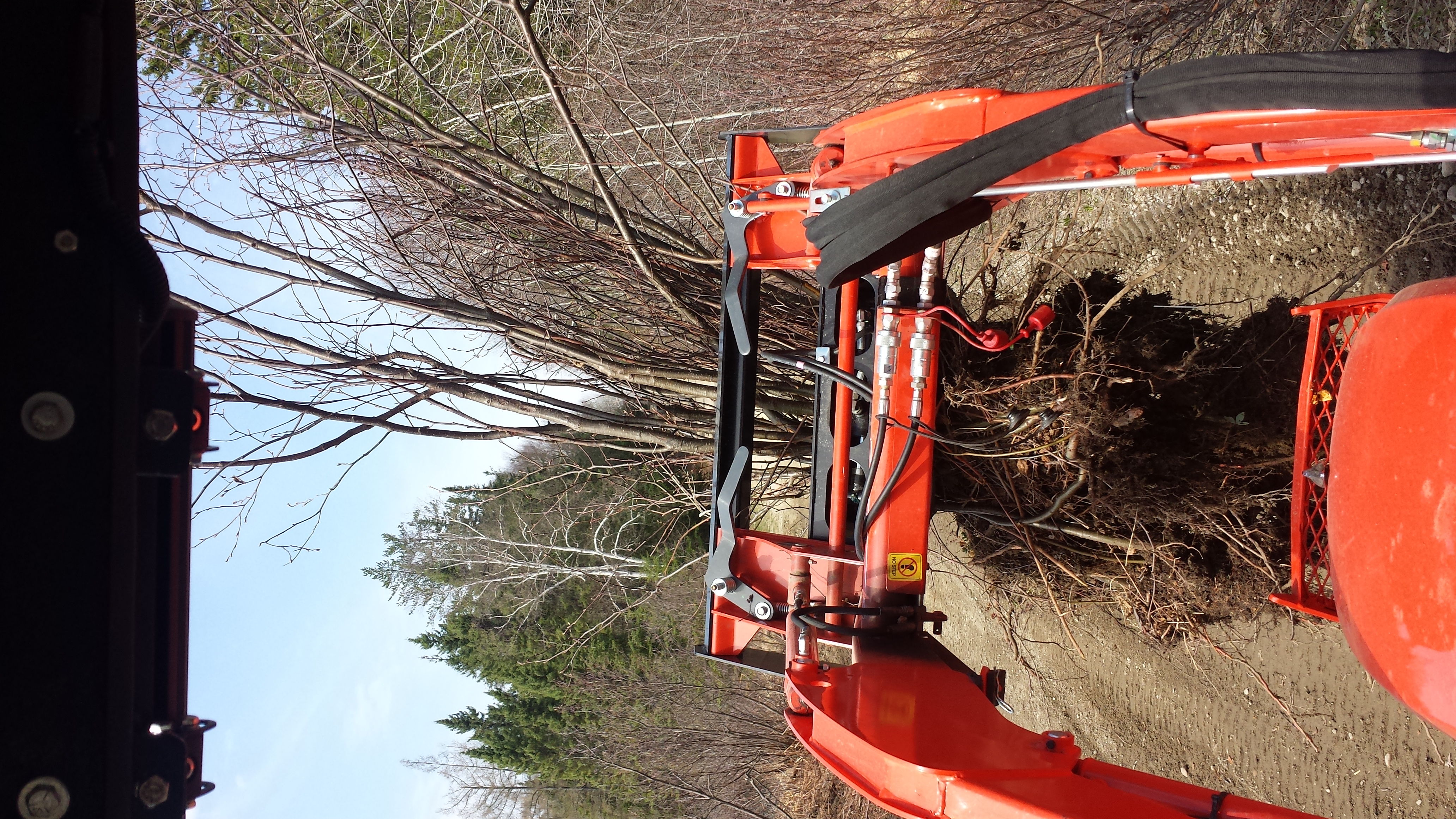 I've been dissed a bit in the past for mentioning this but I have a J. Dunn grapple that I bought for exactly this purpose. I use it for pulling alders and evergreen trees up to 3" in dia from the sides of my camp road. Cutting them off with my rotary cutter leaves "spikes". I can pull multiple trees if they are close enough together. I pile them up and then grab the pile with the grapple and move it to a dumping spot. I cleared about 100 yards of roadway in about an hour. I then go over the disturbed ground with my landscape rake to level it. My plan is to use my rotary cutter to keep the road trimmed once all the problem trees are gone. The ground is gravel, sand or a combination of both.