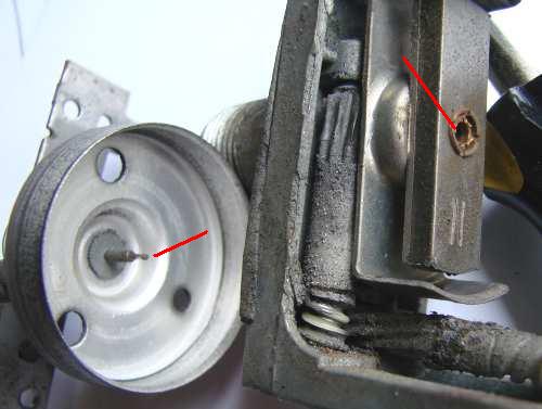 In the photo there is a small shaft about the size of a small sewing needle that goes into the marked hole. Evidently there was a bushing in this hole at one time but now the hole is 5 times the size of the shaft allowing it to wobble.