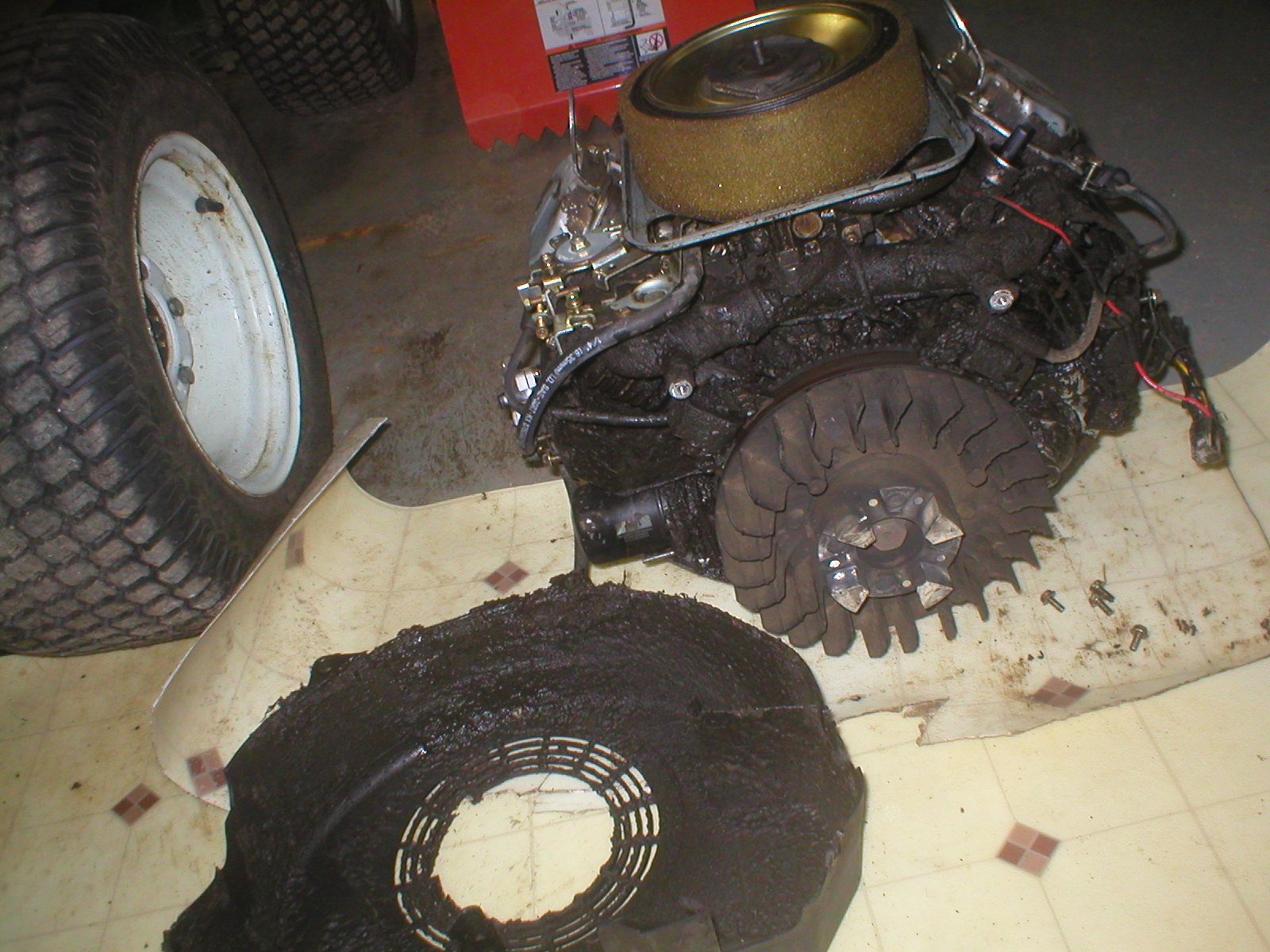 Started taking engine out of my 422 today , done with the easy stuff now to tackle the harder things I think. Found something that could have been bad, the positive cable from the battery to the starter had all the coating rubbed off several places and the copper wire was showing, glad I caught that before something bad happened. Trying to figure out how to get the engine mounting bolts loose , one looks like it is going to be real hard, (under starter) the others look not quite so hard.