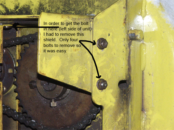 Got the new chain on. Had to remove the big sprocket and then the small sprocket housing came right out. It all went back together without a hitch. Ran it tonight for about 2 hours and it works fine. Thanks again for all the comments.