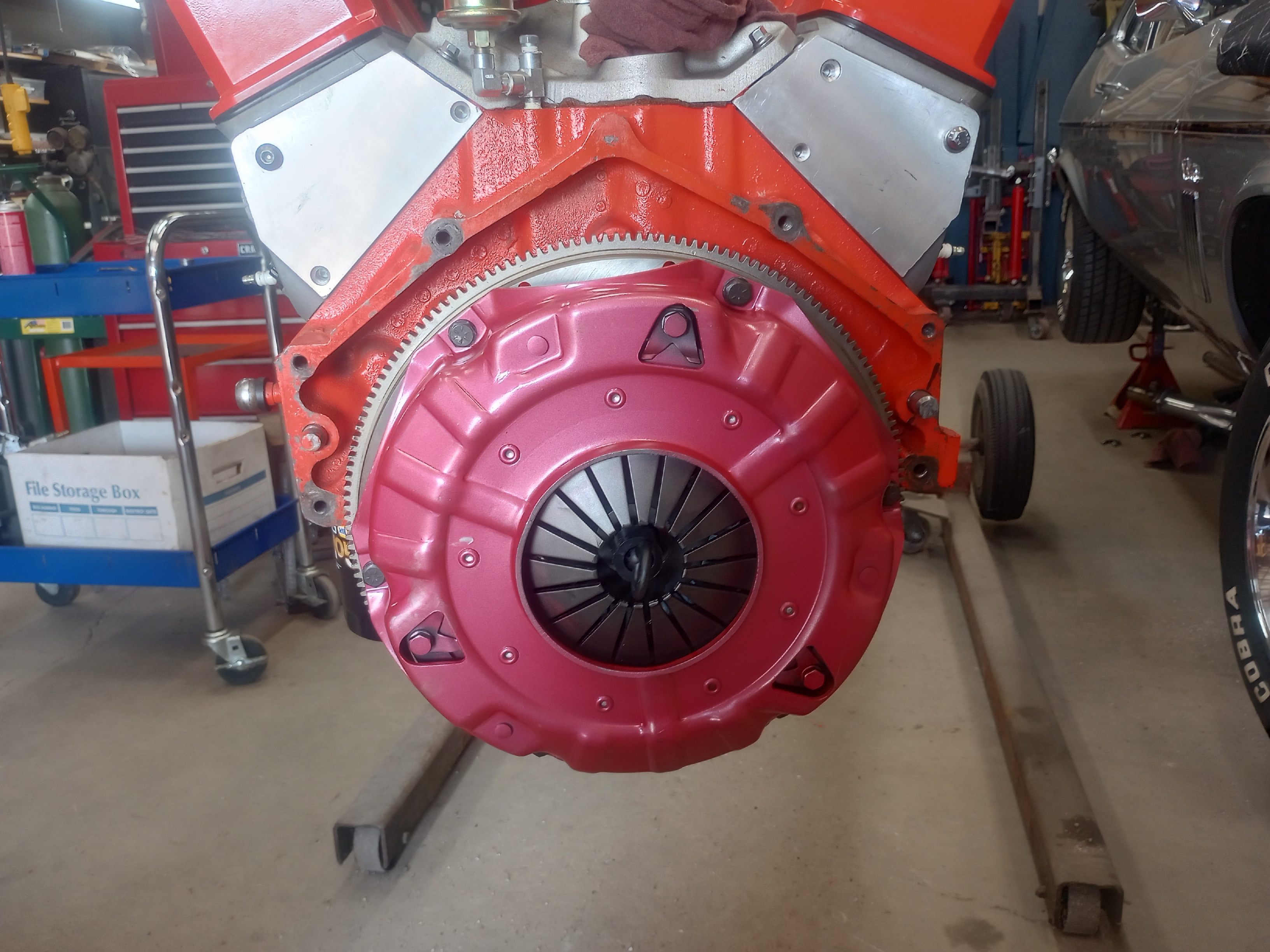 Next was to get it off the engine stand with the engine lift and install the flywheel, torque the bolts, then install the clutch. I had the installation tool for aligning the clutch disk and used it to get it aligned so it slipped in and out smoothly. Then I put the bellhousing on and bolted it up.