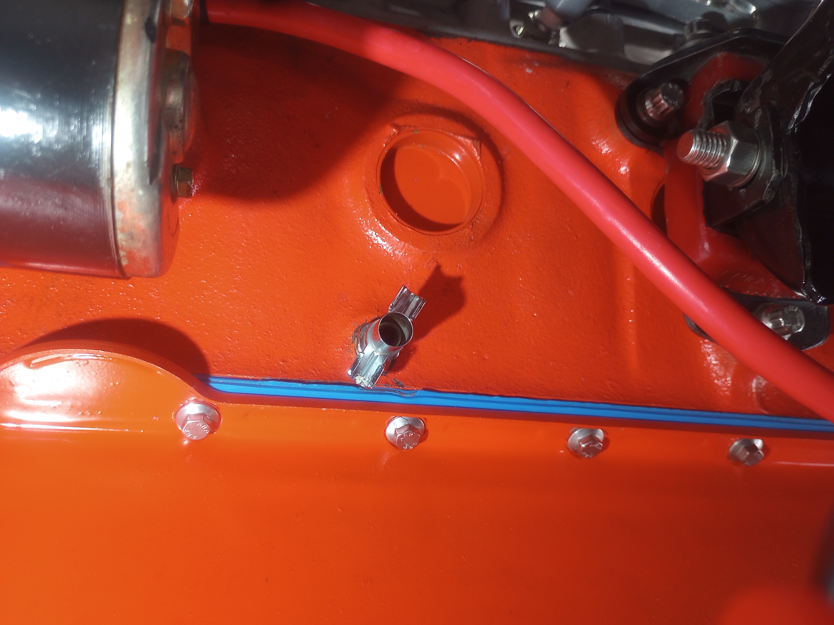 The original plugs were run in really tight when I bought the block and stripped it down. I installed the drain cocks when I put it back together, but didn't make them as tight as the plugs had been, so I know they didn't cause it to crack. Whether the crack was already there and propagated as the block heated and cooled, I don't know, but there was no leak there until recently or I would have noticed it.