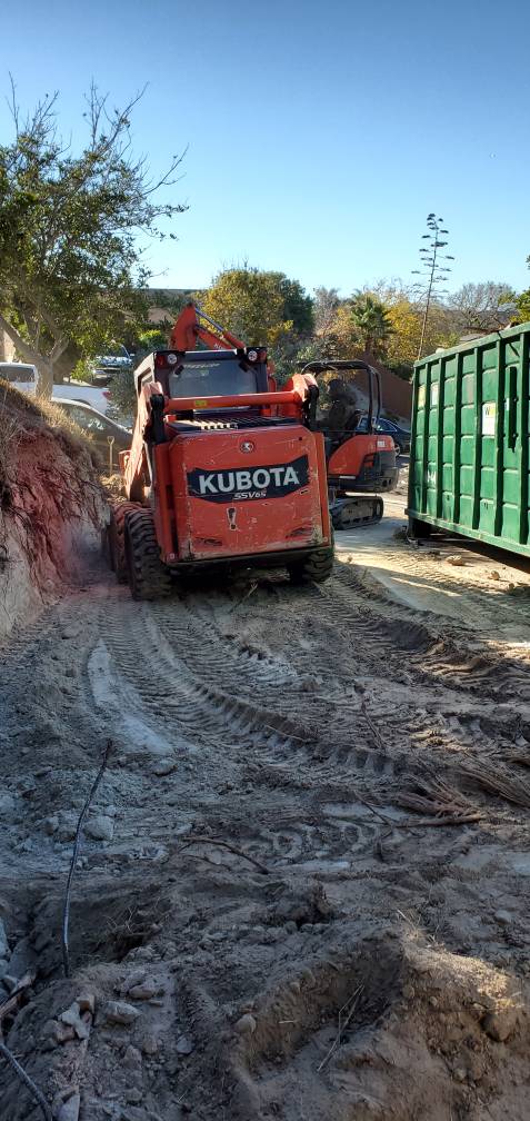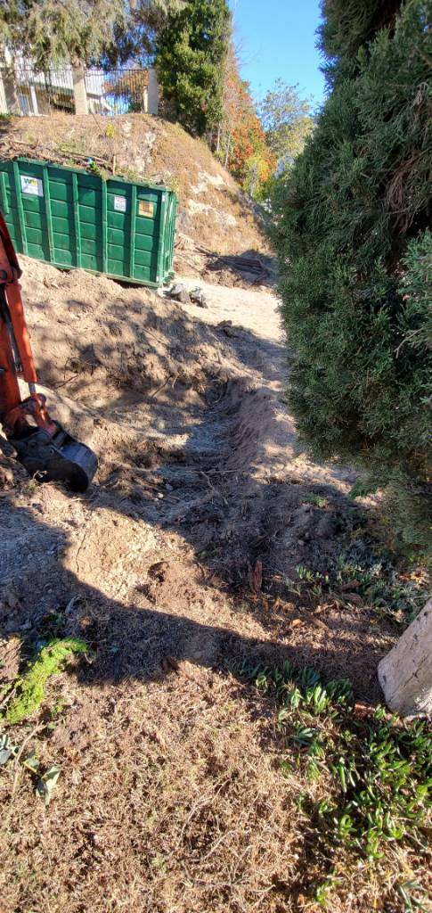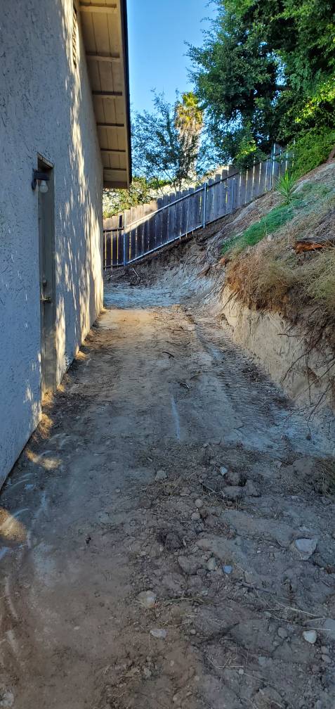 Over at my brother's house he has some soil erosion going on and desires a more aesthetically pleasing hillside. His house sits above the street so our plan is to run a long wall on the hillside as well as a three-tier wall in front of the house.