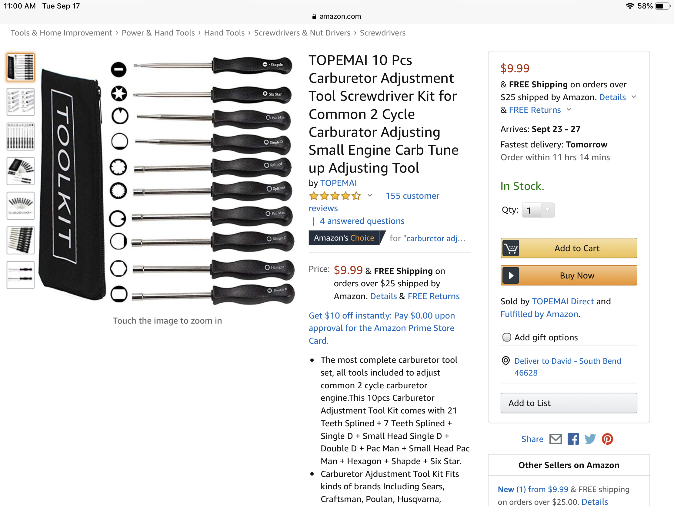 I bought a cheap kit of the special drivers for carb tuneups for about $10 several years ago and did my own the one time it needed it. Used the same kit on my weed eater. Haven't used it since, because they just don't need adjustment that much once you get them set.