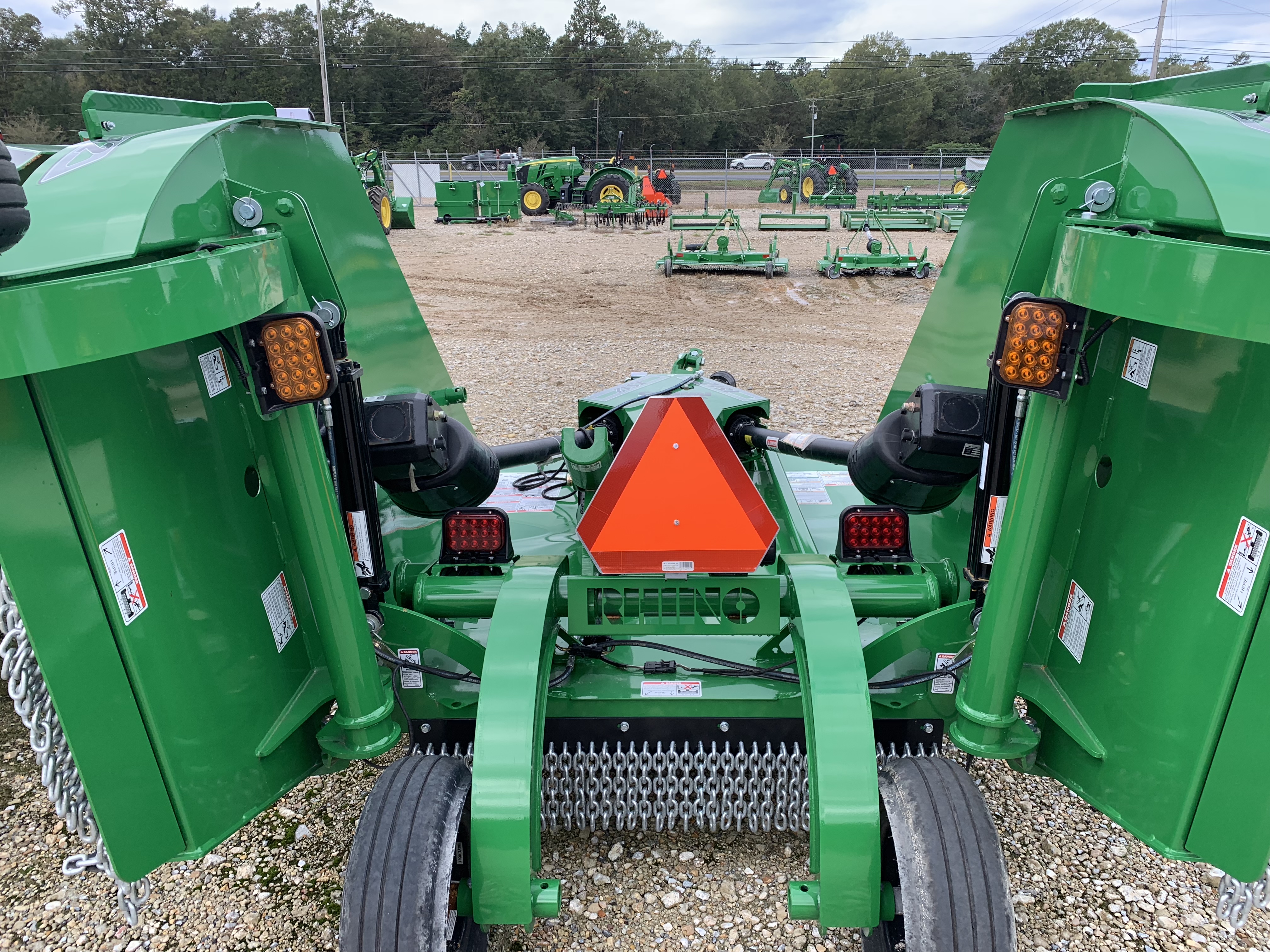 Old thread I know but wanted to keep the info together. I just picked up a new TS 12 and so far I am really happy with it. Really won't get to put it to full use until next spring and summer but so far so good. Engineering and build quality are top notch. It will cut grass as low as a finish mower and leave an outstanding finish. I pull it with my M7060 in in E-PTO. I will probably add the hose kit to be able to control each wing and the lift separately since I have 3 SCVs but the single hose setup works ok and is easy to deal with and hook up. I had to choose between the Land Pride or the Rhino from dealers in my area and would have went with the best price but my Kubota dealer wanted almost 2K more for the LP than the Deere dealer did for the Rhino. Needless to say I went with the green Rhino, lol. I will add more pictures and maybe links to videos of it running in the future. For now here are some pictures of it on the dealers lot.