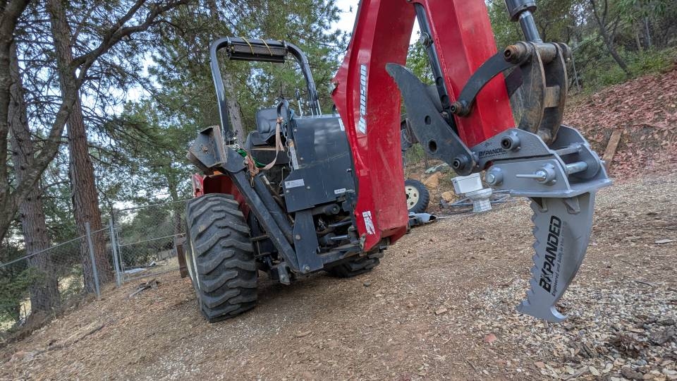 Ripper tooth installed. I haven't used it yet but expect it to revolutionize digging in my hard red clay during the dry part of the year. It should also help in digging where there's lots of rocks.