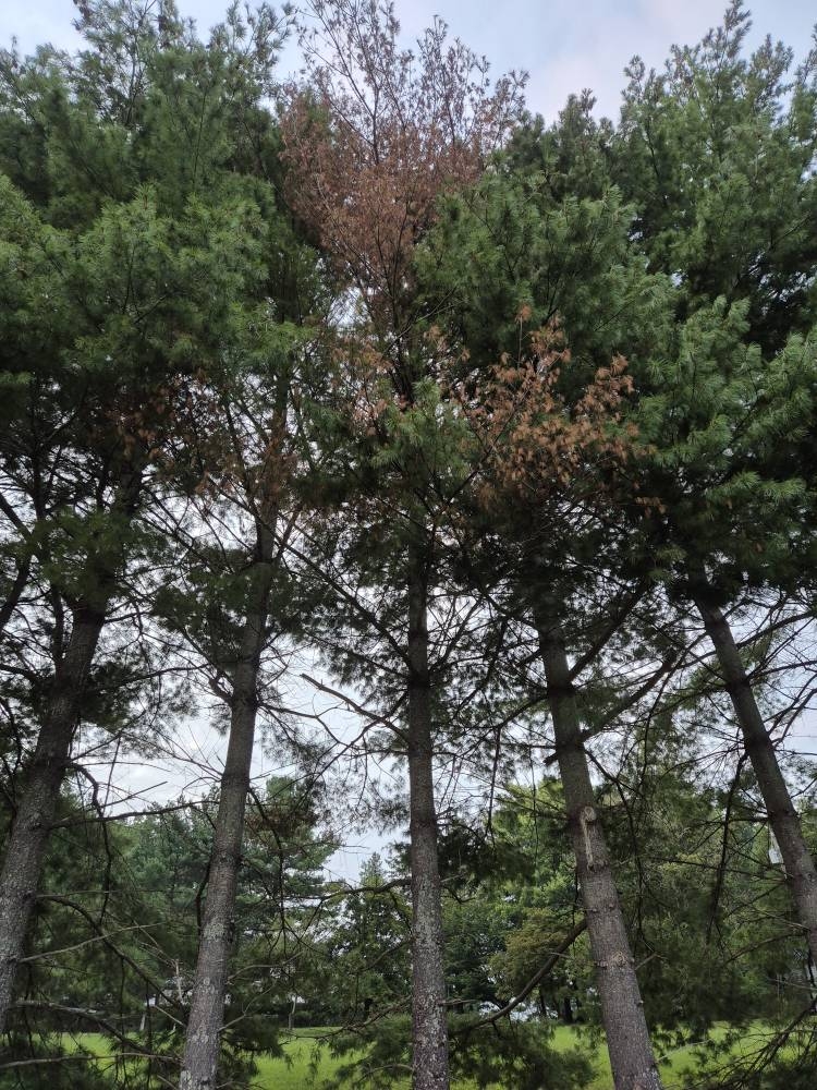 A couple months ago I had one cut because of pine bark beetles. Now I see another one dying...you can hear bugs chewing.