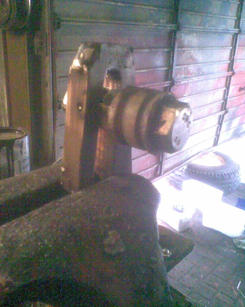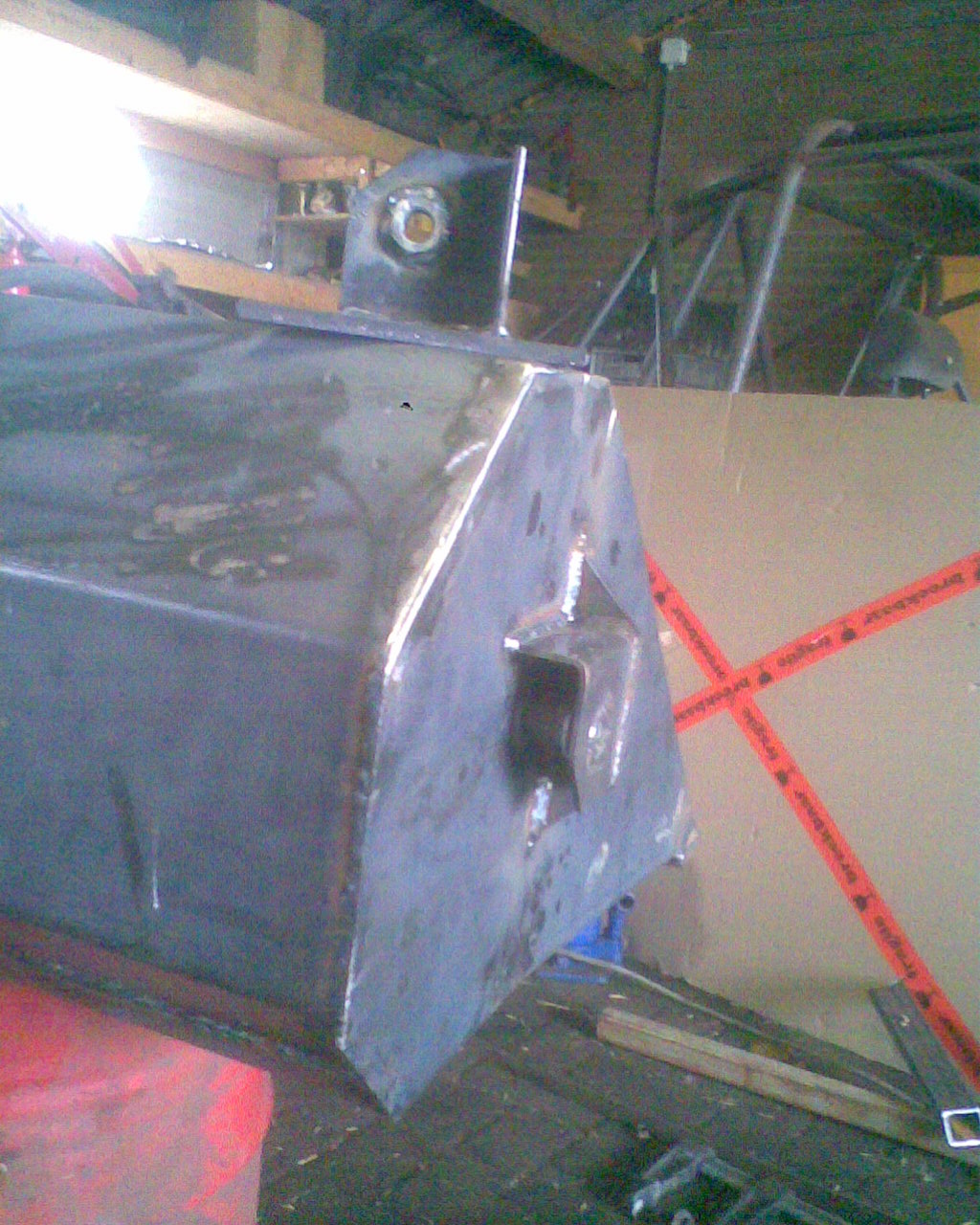 The rear crossbar used to be a support leg of a pig feed silo, and the front crossbar/ 3pt mount used to be a light pole i could get for the taking, from the local boy scouts.