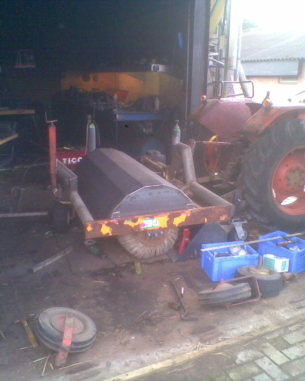 It might have been doing hay for 30 years before it was converted to road sweep, i dont know if it was just plain old, or too light for its new job, but it fell apart: