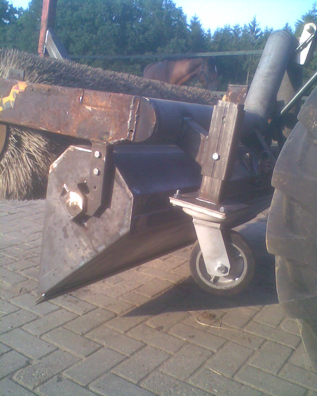 i rebuilt it heavy duty style; OR actually, i built a new road sweep around an existing brush, and just transplanted the angle gearbox, shaft and sprockets from the old one.