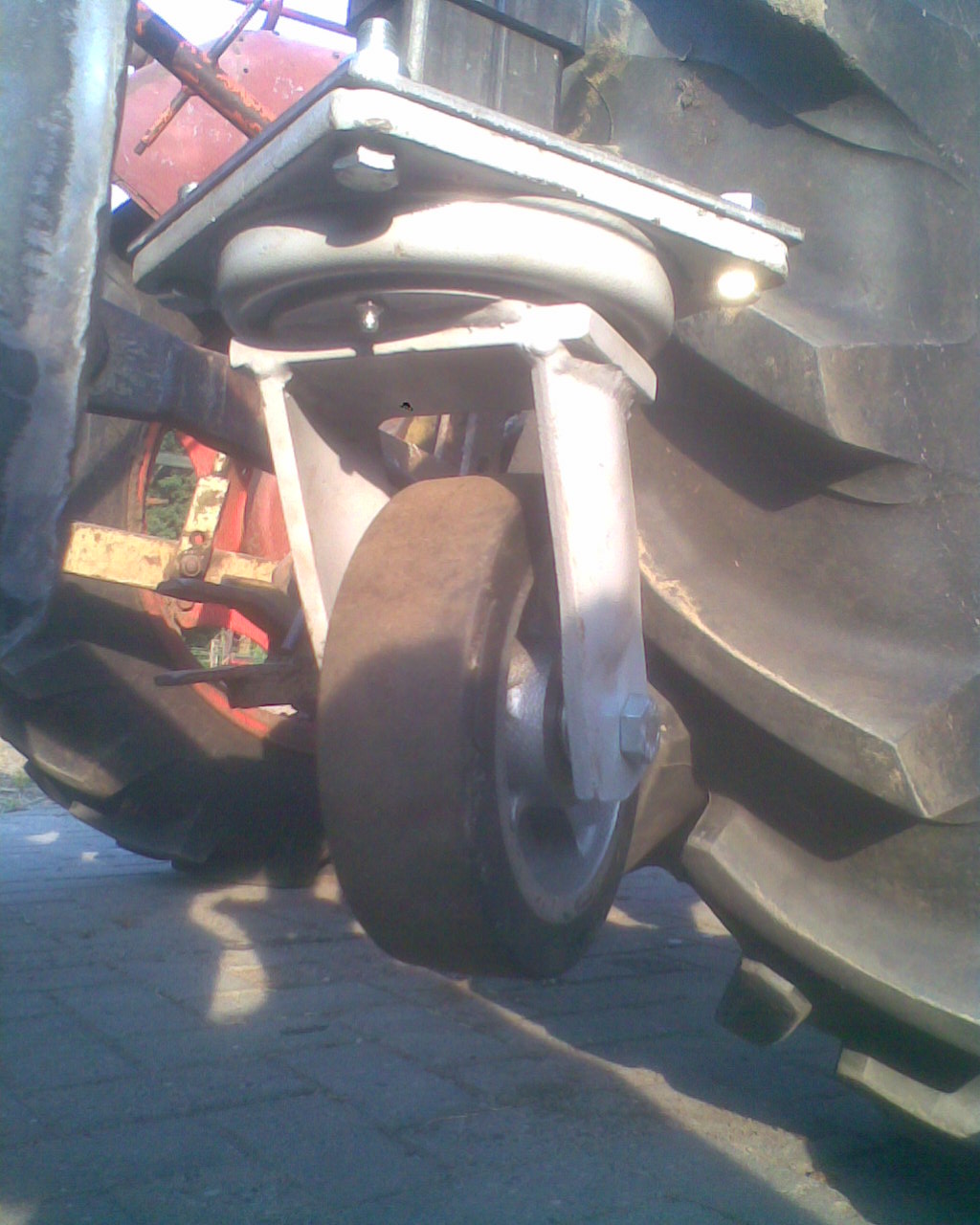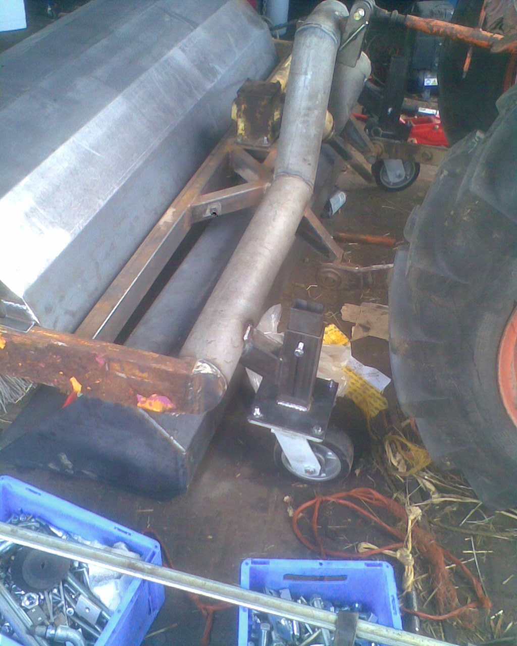 I bought 2 new heavy duty caster wheels (600kg capacity each !) to use on the front. At the rear, i used a pneumatic caster wheel from another PZ hay tedder.