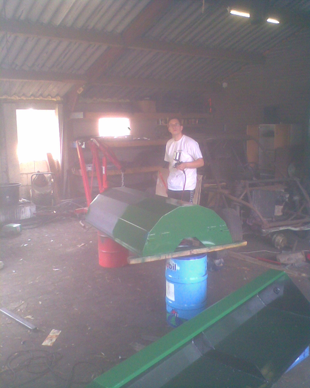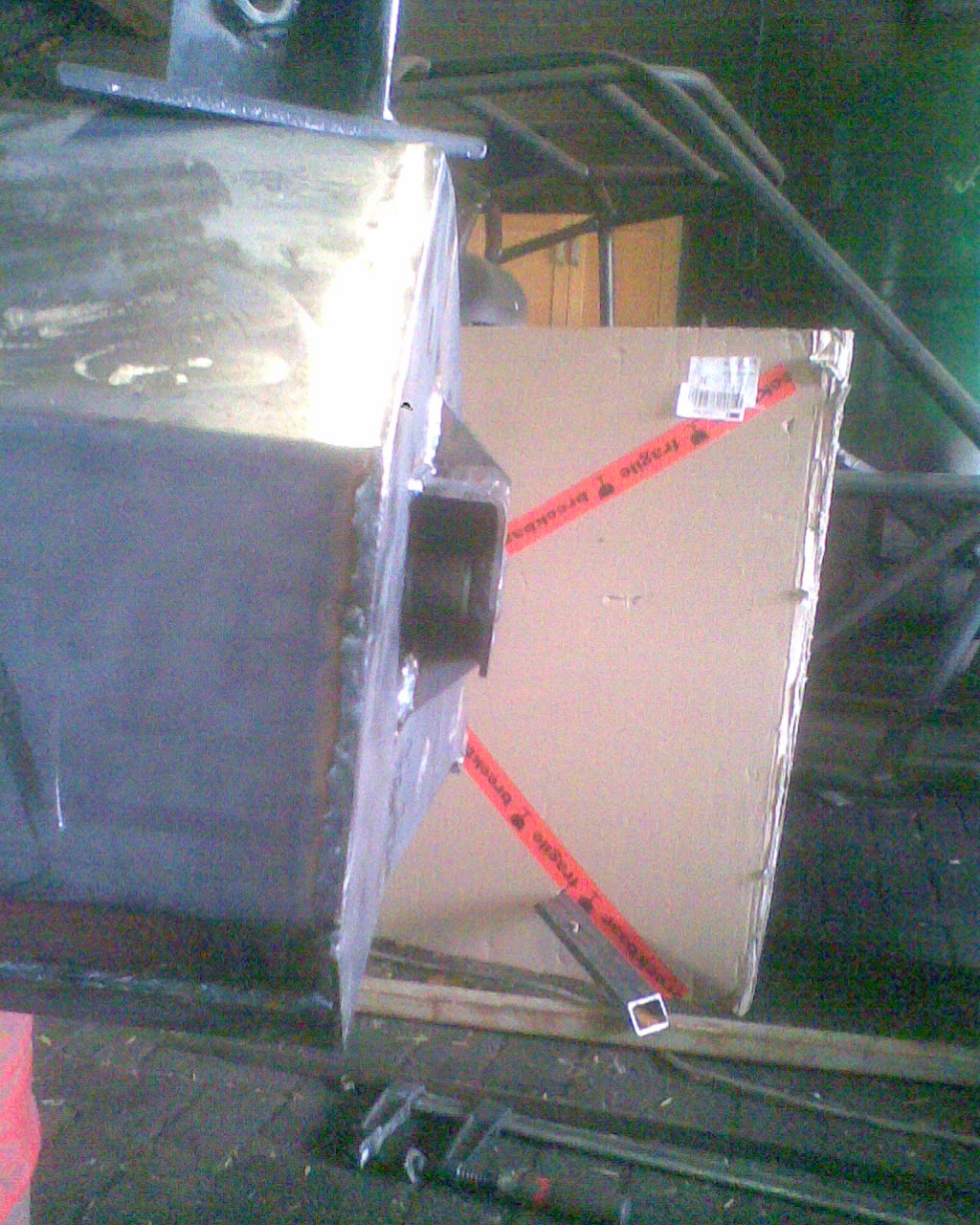The only new steel is the 3mm sheet in the dirt catching bucket and rotor cover. The front cross tube including gearbox support, and the drop tubes from the front caster wheels, were also new steel