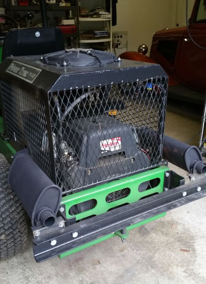 The round chrome thing on the engine shroud is an inspection cover. Had those little snap in things laying around so used a hole saw and presto I can see if there is any grass building up in the cylinder fins. Or at least I hope I can see where the grass builds up. Not 100% confident I can but I think so.