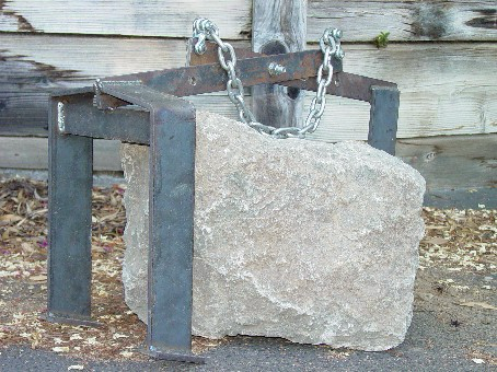 The simplest version I've seen is like a log tong but one finger has two points of contact, giving three points of contact to grip the rock.