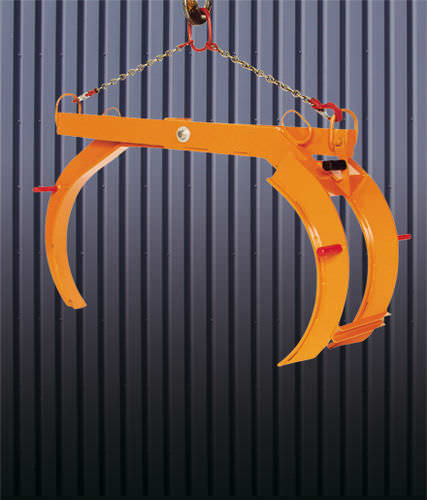 I've had no luck with something like log tongs. You want three of more points of contact to reduce spinning or twisting out of the grip.