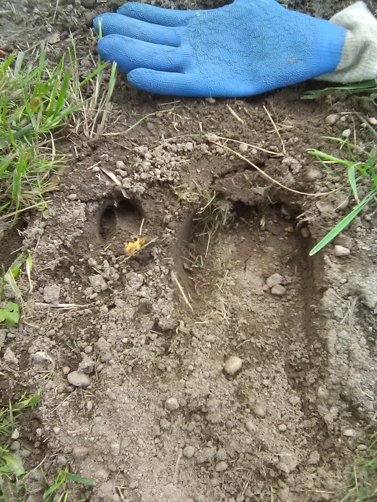 Two of my properties are in Roosevelt Elk territory and they have started decimating our fruit trees there. Roosevelt Elk are the largest of the elk species and can reach at least up to nearly 9 feet (measured tree damage at 8-3/4'). We have fruit trees scattered around and for decades only had deer and black bear to deal with. The necessary cages around the smaller trees have worked but since the trees are scattered a tall fence would be difficult. The elk chew the young trees down, bark, trunk and all. They grab the larger tree branches with their mouths to shake the apples off of the tree, breaking those branches. And of course, they eat all the apples off of the ground, so the deer have nothing, and the bear then have to climb the trees (breaking branches) to get apples on top. Today I ran a copper wire up the small tree trunks in hopes that will prevent chew-downs. Picture is of elk print next to deer print. Anyone have any advice?