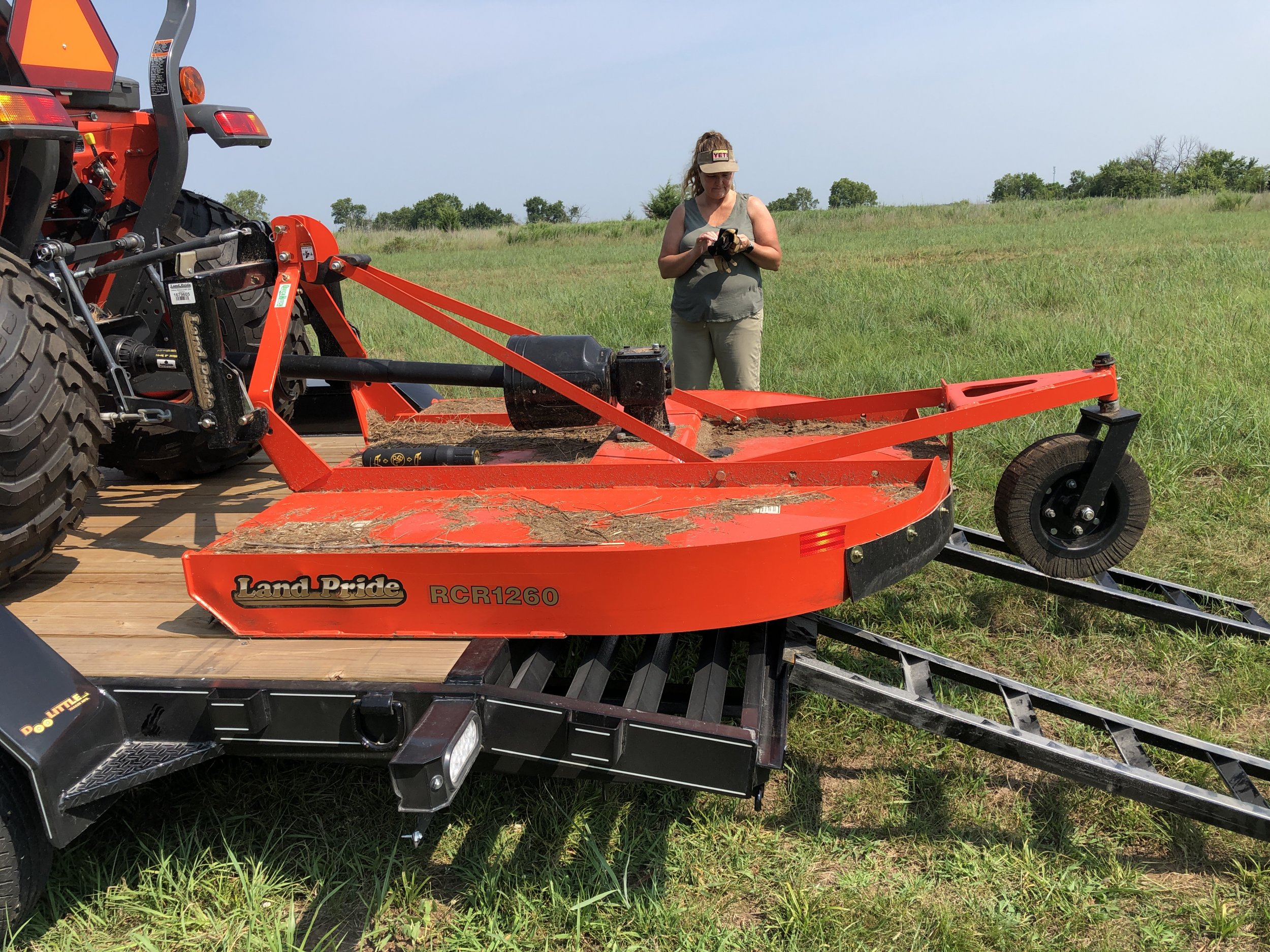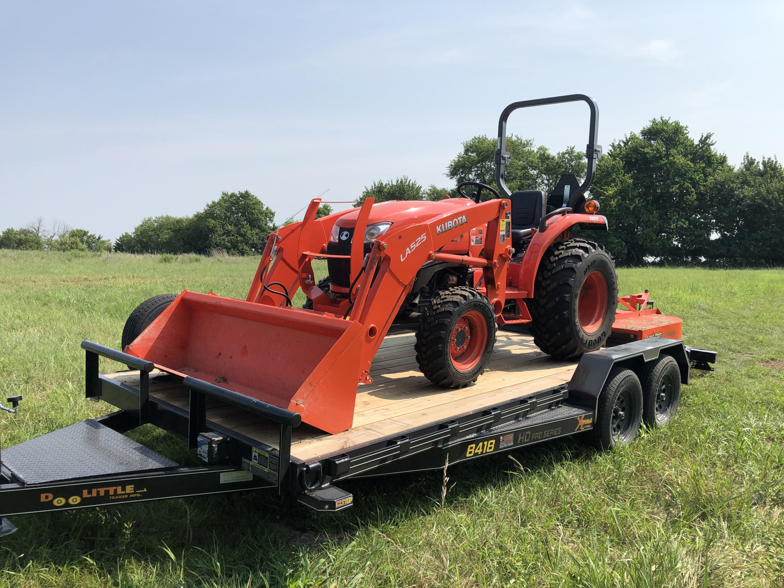 Recently bought a Doolittle 18’ (16’ + 2’ dovetail) equipment trailer. I figured that my rotary cutter would stick out past the trailer some, but should I be concerned? My tie down plan is 4 points on the tractor with 5/16” grade 70 and ratcheting binders with a 2” strap over the bucket and 2” strap over the rotary cutter. I have corner protectors for the strap. I will also be attaching a red flag to the rotary cutter wheel. I think I’m okay here, but looking for 2nd opinions by experienced tractor owners/haulers. BTW, the silver spare is getting swapped out for a matching black one by the dealer, they just didn’t have a black rim when I bought it. I had TPMS monitors installed in all four tires and the trailer pulls like a dream empty. I plan on using it to occasionally haul my tractor and I plan on building some side boards to haul mulch and topsoil and other odds-n-ends.