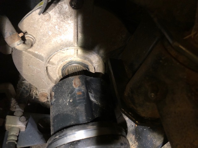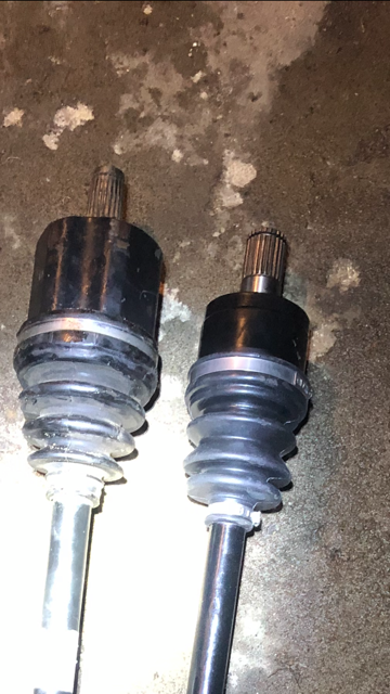 I reinstalled the old axle because I did not want the machine just sitting up on jacks. The teeth inside of the differential were fine, but after reinstalling, the wheel no longer had any resistance, and the joint really just flops around. The new axle will be here Saturday so I will install the new axle then, and hopefully my problem is solved. The little c-clip that is on the end of the axle was pretty chewed up and pretty much gone. The last pic is how the axle came to rest after just moving the machine out of the garage.