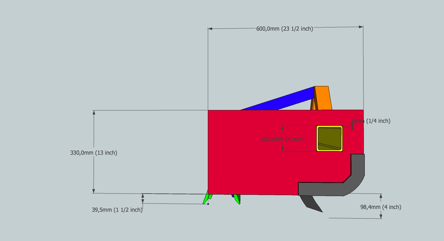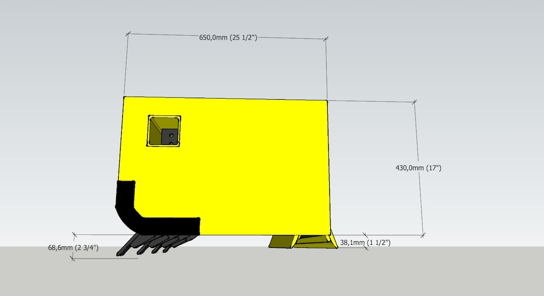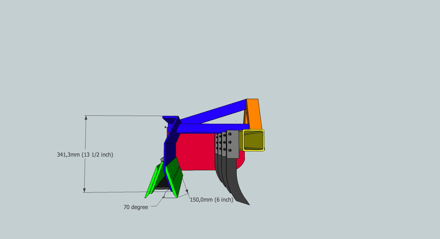 The scarifiers look thin to me. They'll see significant side loads and twisting forces when turning the tractor, and when they are hitting rocks/roots, etc. I'd recommend at least 12mm (1/2") or thicker material. You also may want to weld a "shovel" face on them to make the tips wider, ideally out of hard material.. The scarifiers purpose is to break up and lift the ground, not just to slice it.