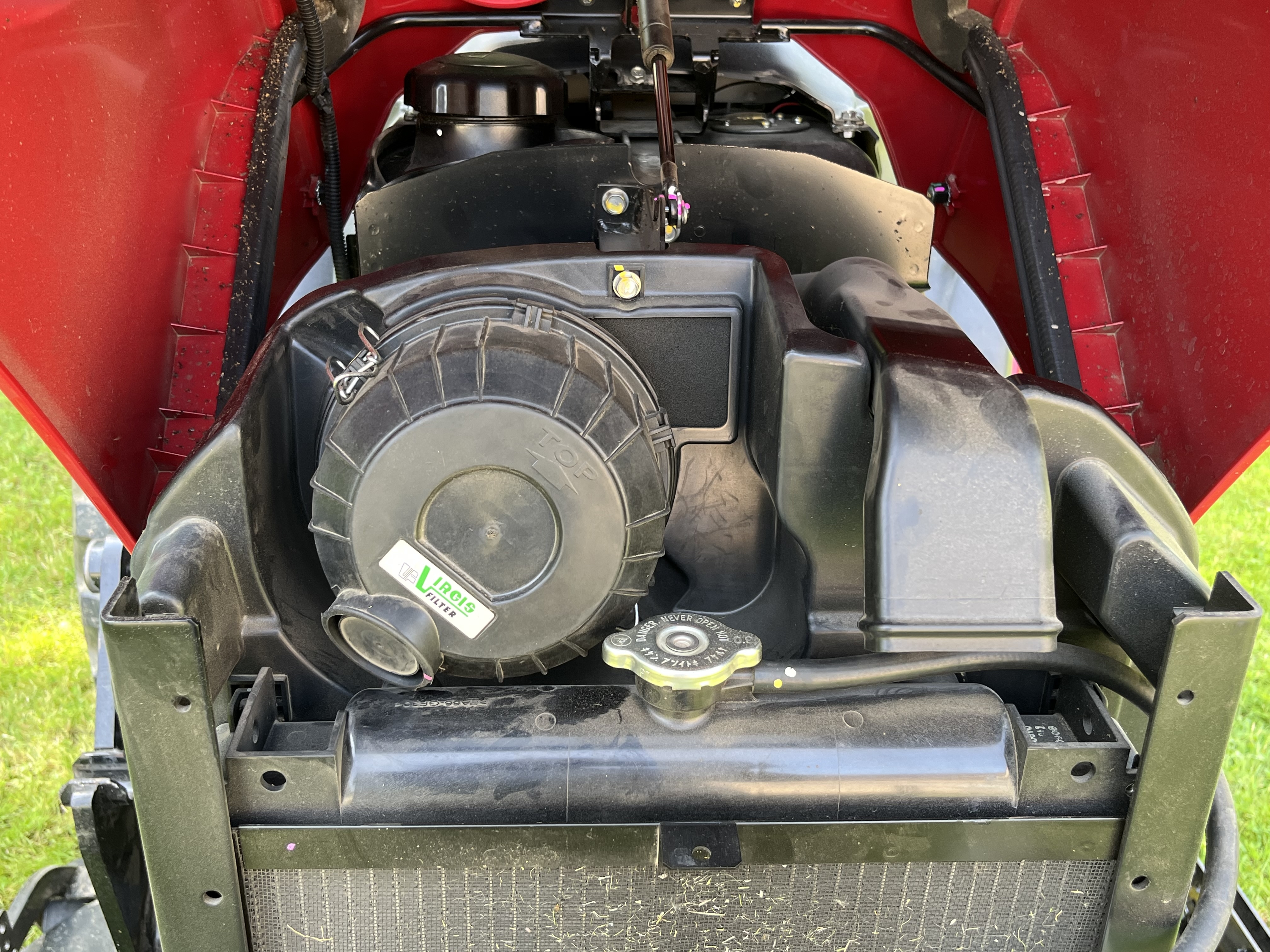 My 424 is 4 years old with 600 hours on it. I recently noticed the air filter housing assembly is just loose enough that it has worn a fairly large gash in the top of the radiator. I’m surprised that the plastic housing is the winner in a plastic rubbing on metal situation. I stuffed a bit of rag under the backside of the housing to create a makeshift shim for the day, but I’ll need to devise a more permanent solution when I get back from work. Has anyone else encountered this issue?