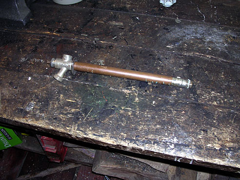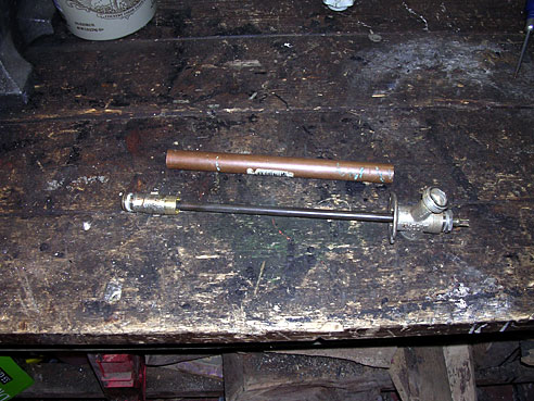 OK, I can be a man with too much time on my hand, but it still was nice project. The not freezing spicket froze again and I decided to fix it instead of replacing. Here are the two basic components after the lathe, sized to accept a copper tubing: