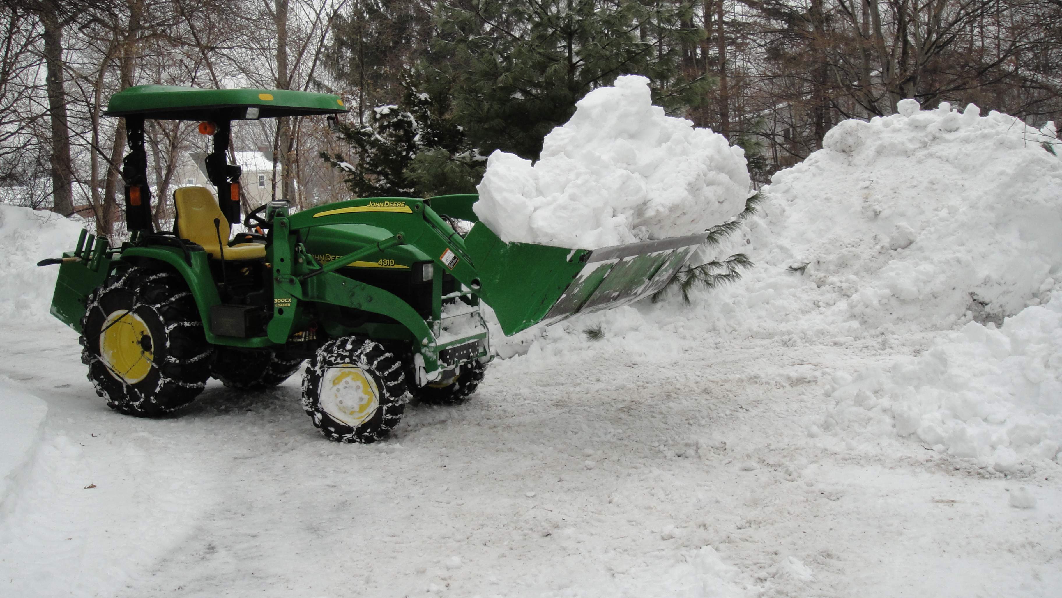Going from the 5 ft to the 6 ft bucket made a huge difference, but now I rigged a power angle snow plow, which makes things even faster, but eventually I have to put the loader on to move the piles back.