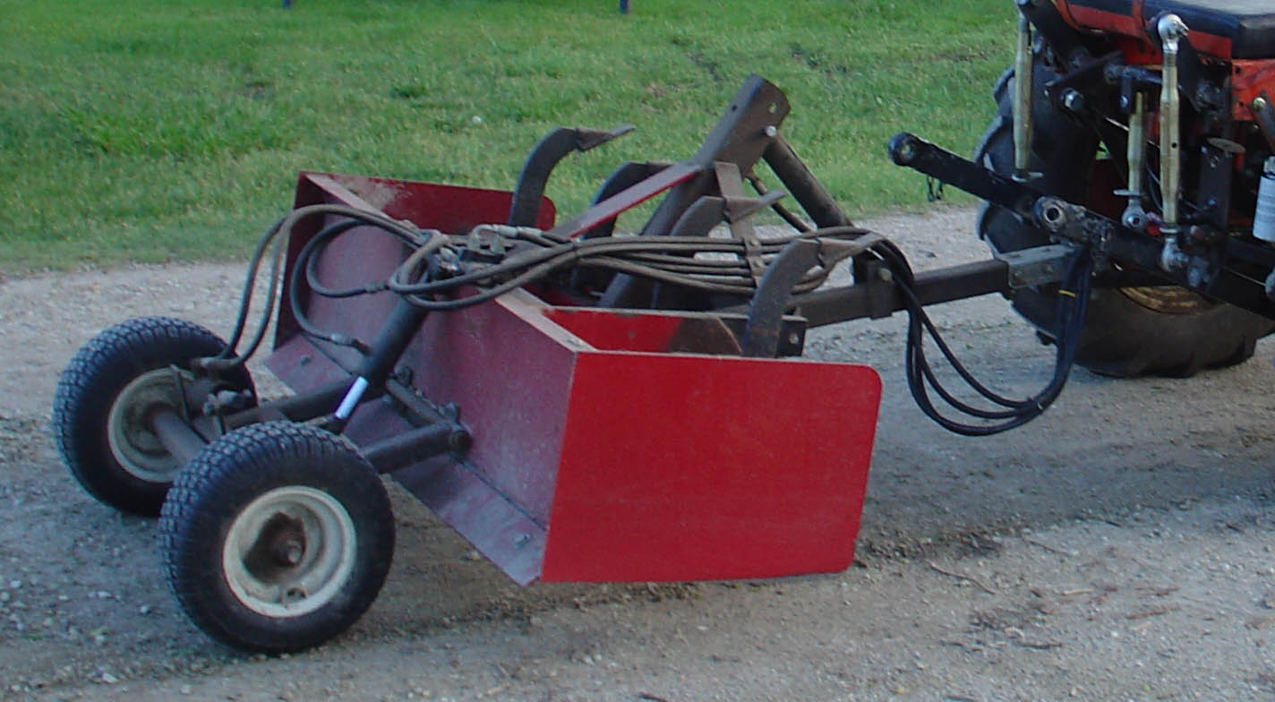 On your drawing, unless you add some easy method to jack up the box between the wheels, it will be difficult to transport without cutting inplaces you don't want it to cut. By using the 3PH, you can build this simpler and you will be easilly able to raise and transport or turn around without tearing into something you maybe don't want to.