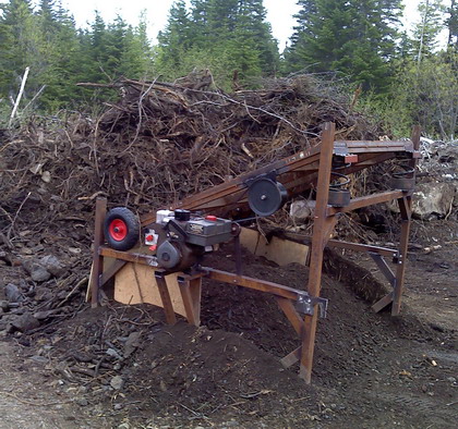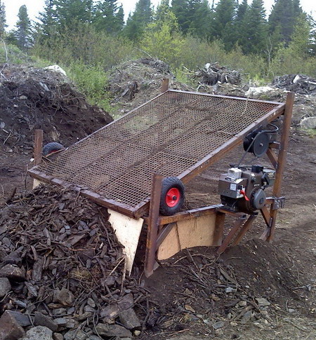 I had several hundred of topsoil that was grubbed off the land at my girlfriends cabin that was mixed with tree stumps, roots and rocks. All this wonderful topsoil was trucked away and dumped in a pitt. I saw AK's screener and thought it was a wonderful idea to recover this soil rather than pay $300 a tandem for topsoil.
