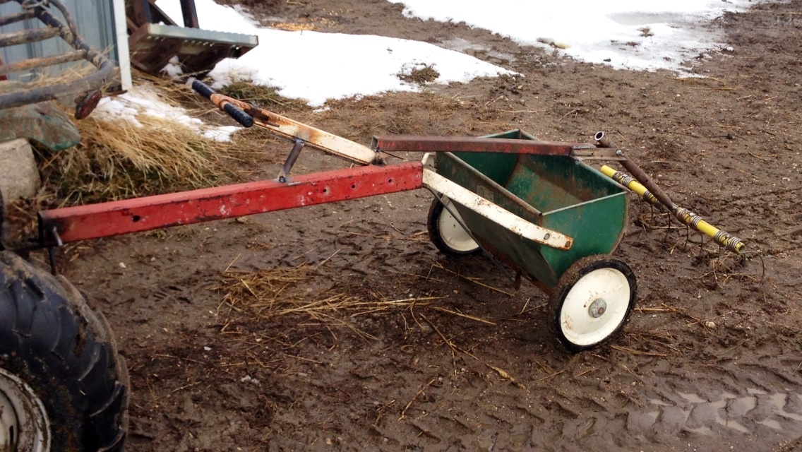 Then with a 50# moultrie seeder that I bolt to the front of the tractor with a remote switch to broadcast with I broadcast and let the cross tie drag just barely touch the ground and cover it.