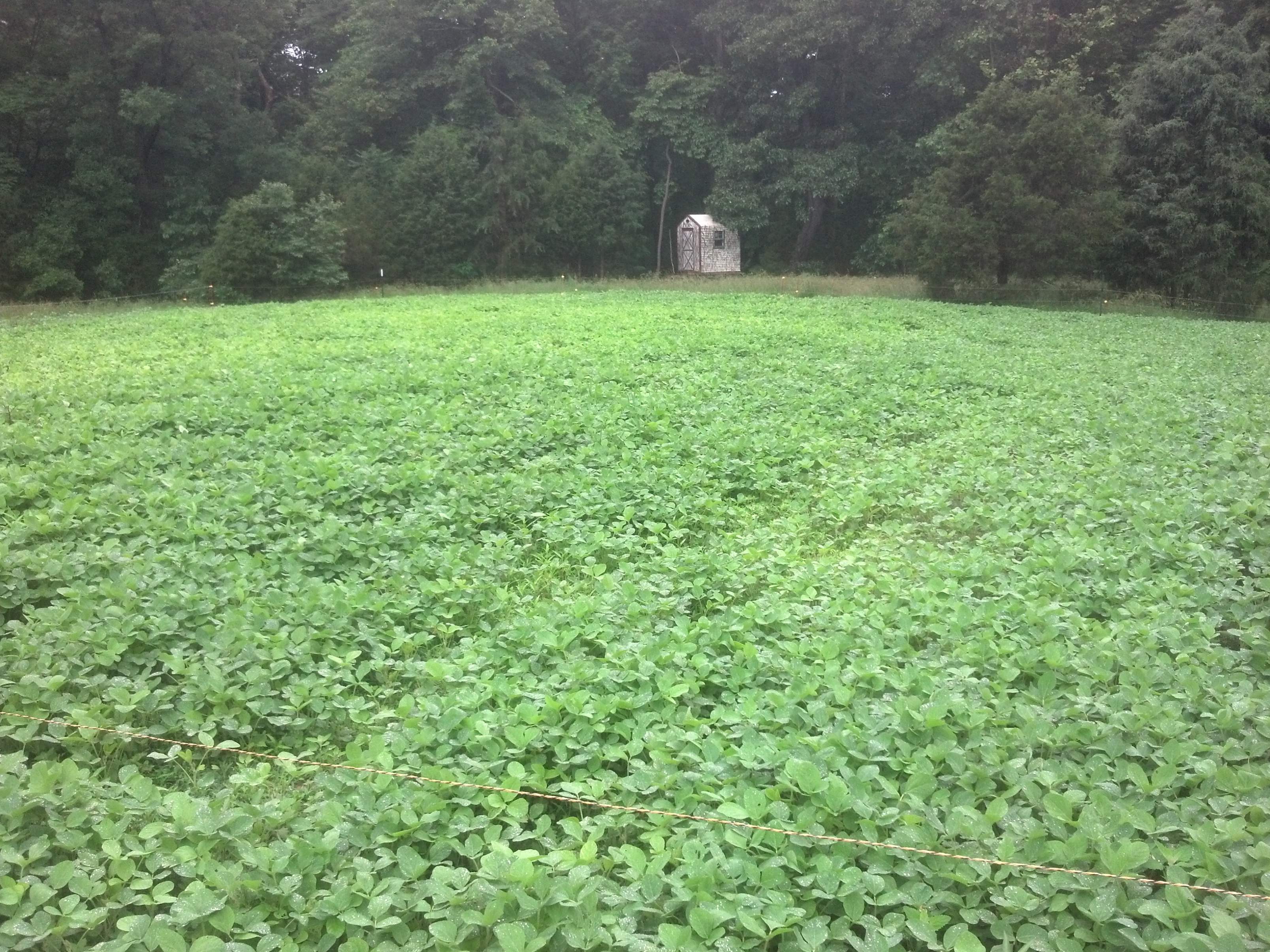 One of my plots of forage beans that was covered with a section of chainlink fence and a few basketball sized rocks on top. This pic was about 30 minutes ago. The beans are about 8 to 12 inches tall. They will grow another 4 to 5 feet between now and August.