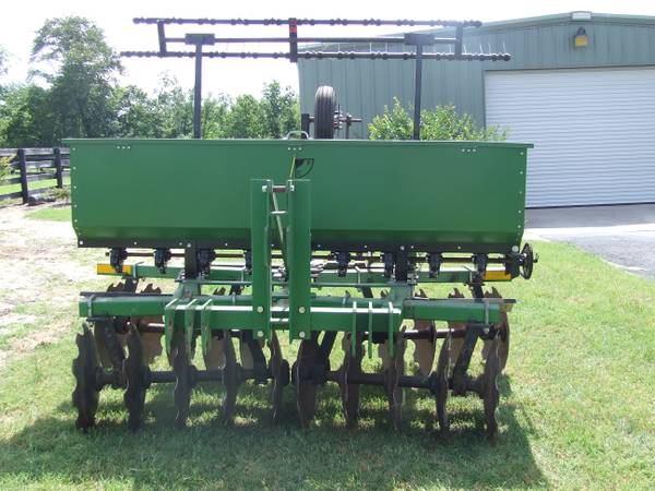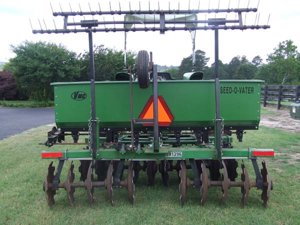 Before my father in law passed he used a disc seeder one was a old drill mounted on a 22' disc and the other was a Gandy air seeder on a 28' disc. I don't have any pics of his setups, but here is one on a three point mounted disc. The one thing this one seems to be missing a means to control the depth other than the three point. I would think some tires that can be set to control the depth would be best.