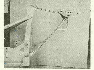 OK guys, lets get past the fact that the check chains only hold up the front of the mower. The chains that Woods sent with the mower and the bridle that Sidewinder has pictured (although I haven't figured this one out) are designed to hold the mower more level on uneven ground. The rear axle is the pivot point of the hitch as the tractor front wheels follow uneven ground. The lift end of the lift arms are about 2 feet beyond the rear axle. If the front end lowers a few inches, the arms raise the front of the mower, leaving longer grass in that area. If the front of the tractor raises, then the mower drops and either scalps or slides on the runners. If the front of the mower is supported on the check chains that are hooked much closer to the pivot point, the up-and-down pitching of the front of the mower is much less. Thingy touched on this briefly. I found a picture of a setup (Ford or Dearborn if I remember right) that uses a chain over a rigid top link to support the front of the mower. I'll try to find the picture and post the link, or maybe some will recognize and repost the picture. I think this would be better in that it would counteract the up and down pitching. I'd try to experiment with the triangular suspension, but would much prefer to buy one that is already thought out. Has anyone seen such an arrangement for sale?