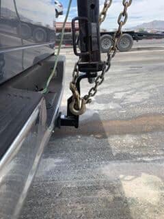 An older pickup was backed up to the curb in the loading area. As I walked by it, I noticed the rear seat area was packed full of 'stuff'. Everything from clothes to grocery bags, full to the roof. Then I noticed the bed was heaped above the sides with similar junk, like they moved out of somewhere and were living out of the truck. All loose stuff thrown in and heaped. On top of all that was a large box from the store, maybe 8" x 3' x 6'. The box looked like it was full of particle board shelving or similar, so it was heavy. It was above the rear window of the truck since the bed was stacked so high. Holding it on was a large 3" web ratchet strap, attached from inside each rear wheel well and onto the frame. The metal ratchet was in contact with the driver's rear tire. From what I could tell it looked like they backed up to the curb, and the trailer hitch with ball barely cleared the curb and sidewalk. Then they overloaded the truck more by adding that large box and strapped in in place. The hitch was smashed into the concrete, so I though for sure I could get a picture when I came out a few minutes later. Nope, it was gone. Apparently they drove off that way, and all that was left was the scrape on the sidewalk and curb.
