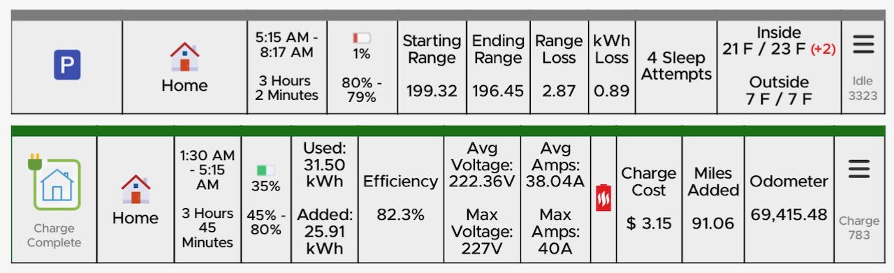 My 2013 Tesla Model S 85 about the same day as the viral media report. Might notice the red "battery heat" icon indicating the battery heater was in use during charging. "Inside" is the car's passenger compartment. It would seem heating the battery (which occupies the entire floorboard) warms the inside of the car.
