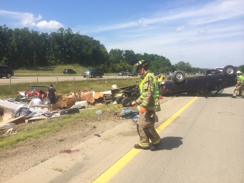 A rollover crash snarled traffic on northbound US 23 Friday afternoon. It happened around 3:10 p.m. in Tyrone Township on northbound US-23 between Center Road and White Lake Road. Livingston County MI. Undersheriff Mike Murphy tells WHMI preliminary investigation shows a Ford F-250 was pulling a travel trailer and started to sway. Murphy says the driver was unable to maintain control, went into the median and rolled over several times. Everything inside of the trailer was basically destroyed including four wheelers and motorcycles. The female driver was hospitalized for injuries to her hand but was alert and conscious at the scene. Two passengers were treated and released at the scene by Livingston County EMS. Seat belts were worn and no drugs or alcohol are suspected. Murphy says the trailer was also hooked up properly.
