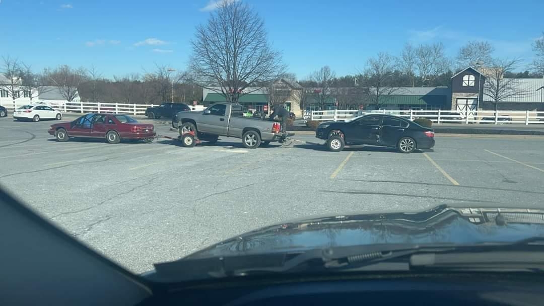 Based on comments above, I believe that most of you misread the photo in question. The pickup is towing one vehicle while pushing another. Perfectly safe, as long as he knows what he is doing. 🙄