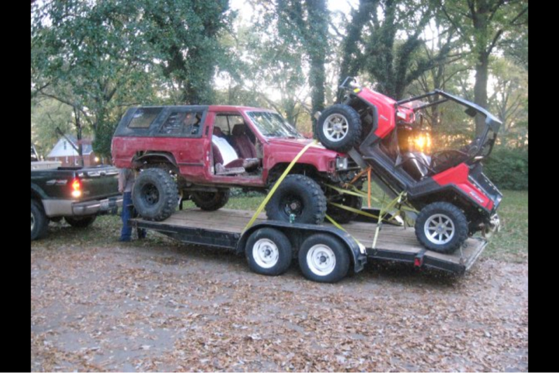 Looks like its probably within weight limits of the trailer and well strapped down. A very inventive way to maximize space on the trailer.Who said anything about gently! He and I are childhood friends and I can promise you he has never done anything gently. That photo was taken about a year ago maybe little more. I wish I had one of the four runner now.