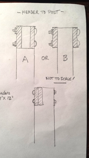 The big questions are: 1) Can I get away with just three piers? 2) If I use four piers, can I still use 16' 2x12s for the header even though they won't meet at a post? Otherwise I'd have to use three 12' board trimmed and meeting at each of the center two posts. Other thoughts?