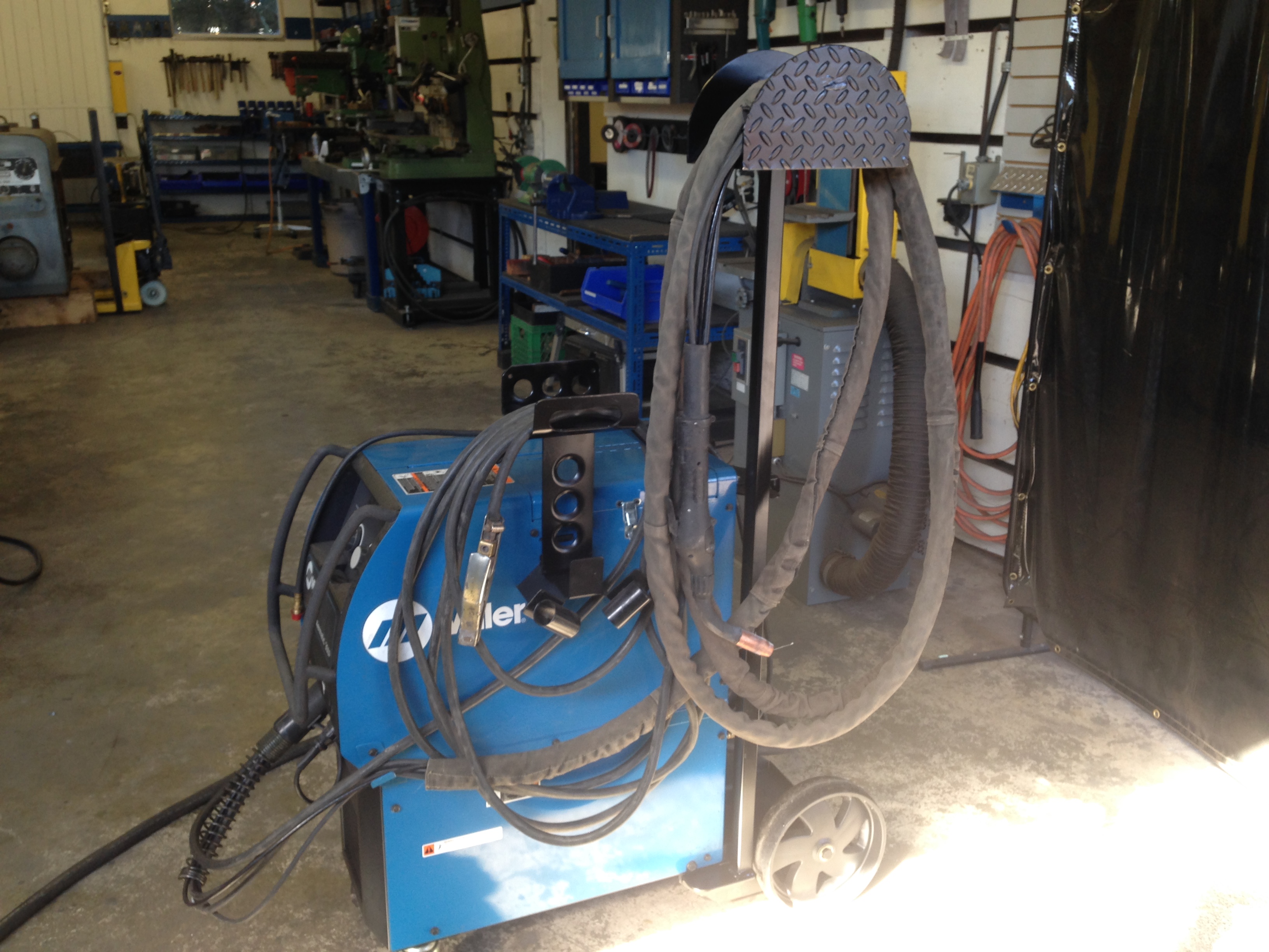 Feeder on top and BB “tip and drop” holder to secure Miller Extreme plasma cutter OR Miller Maxstar 150