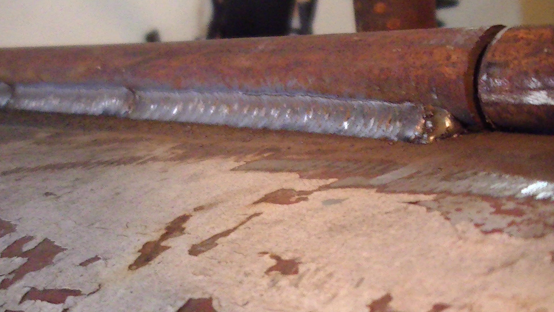 Spray transfer leaves a virtually smooth weld. I don't see much V's in my welds with spray. Done right, spray transfer only is a quiet hiss. It's hard to tell as there are smooth areas, and then V's. Might be the gas you were using.
